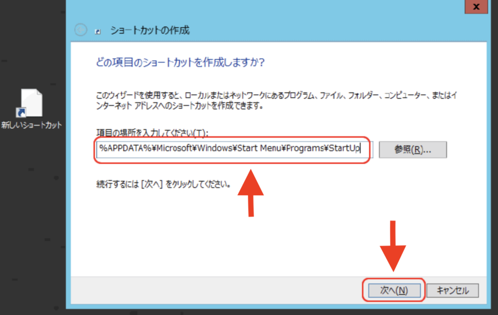 以下の文字列を入力し、[OK] をクリック%APPDATA%\Microsoft\Windows\Start Menu\Programs\StartUp