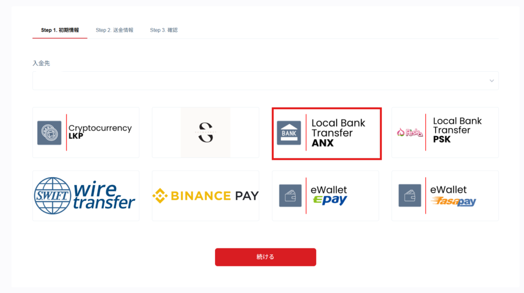 詳しい入金方法はDoo Primeの入金画面の手順に従ってください。